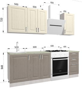 Кухня EXLUSIVE шато крем/шато латте 1,5м (Без столешницы, мойки, сушки)